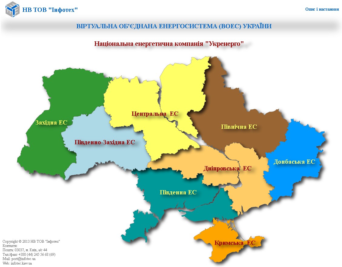 Натискаючи на рисунок з картою України (нижче праворуч) потрапляємо на карту України, на якій розміщені енергосистеми (ЕС) ОЕС України (Рис. 1).